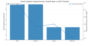 Small capitals are outperforming the big two. As Westpac notes, As Westpac notes, Perth and Brisbane have led recent growth, significantly outpacing Sydney and Melbourne. Those major cities are still rising, but growth is cooling. Strong demand and tight supply in places like Perth and Brisbane mean faster gains there.